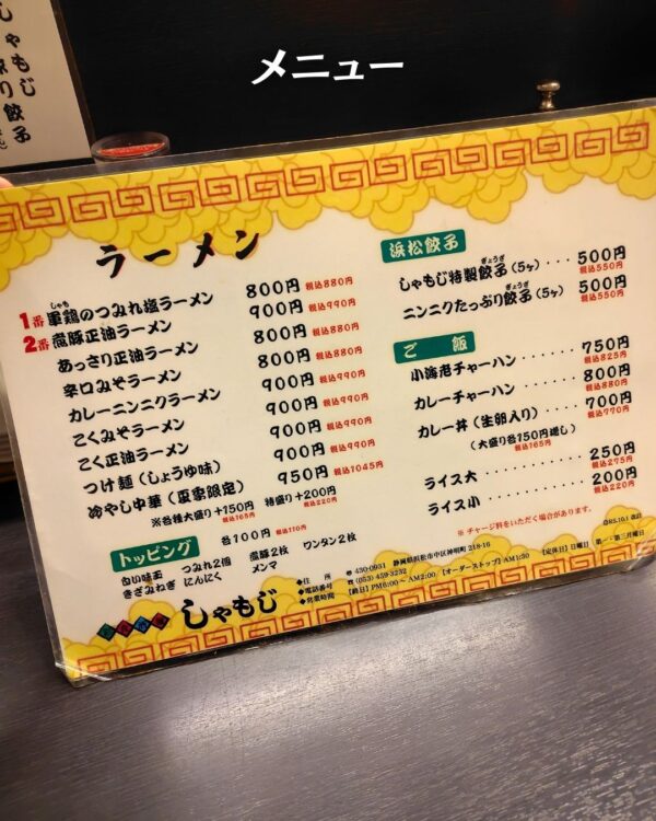 お店おすすめの「浜松餃子」は今回お腹の都合で断念しましたが、口コミでも人気の一品なので是非ラーメンと一緒に召し上がってみてくださいね😉