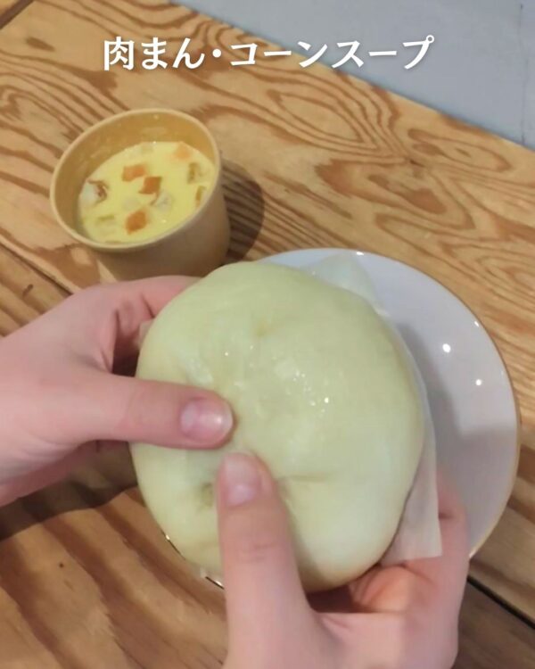 今回は「肉まん」と「コーンスープ」を頂きました😋