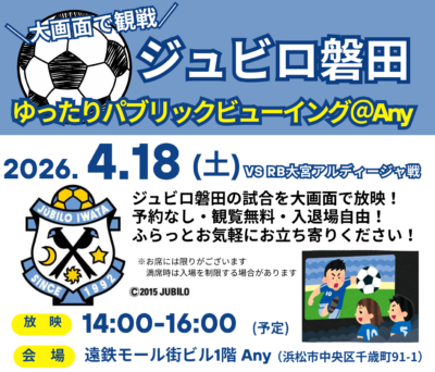【Any】ジュビロ磐田パブリックビューイング開催のお知らせ⚽