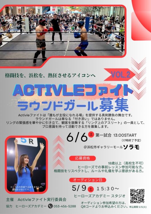 【浜松まちなか】『Activleファイト Vol.2』開催決定!!ラウンドガール募集中✨